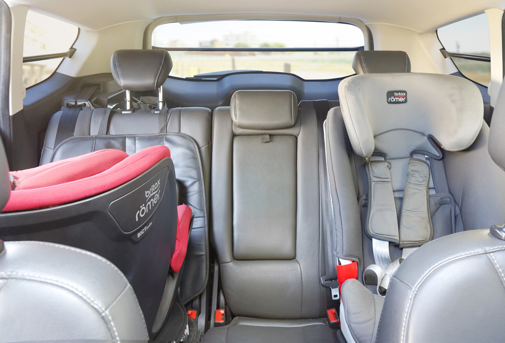 其實 Ford Kuga已經算大台休旅車了,但裝上2台 Britax 的安全座椅後,中間位置的空間還是被吃掉一大半,坐成人也還是有點勉強,奉上安裝 WIDFIX 的前後對比