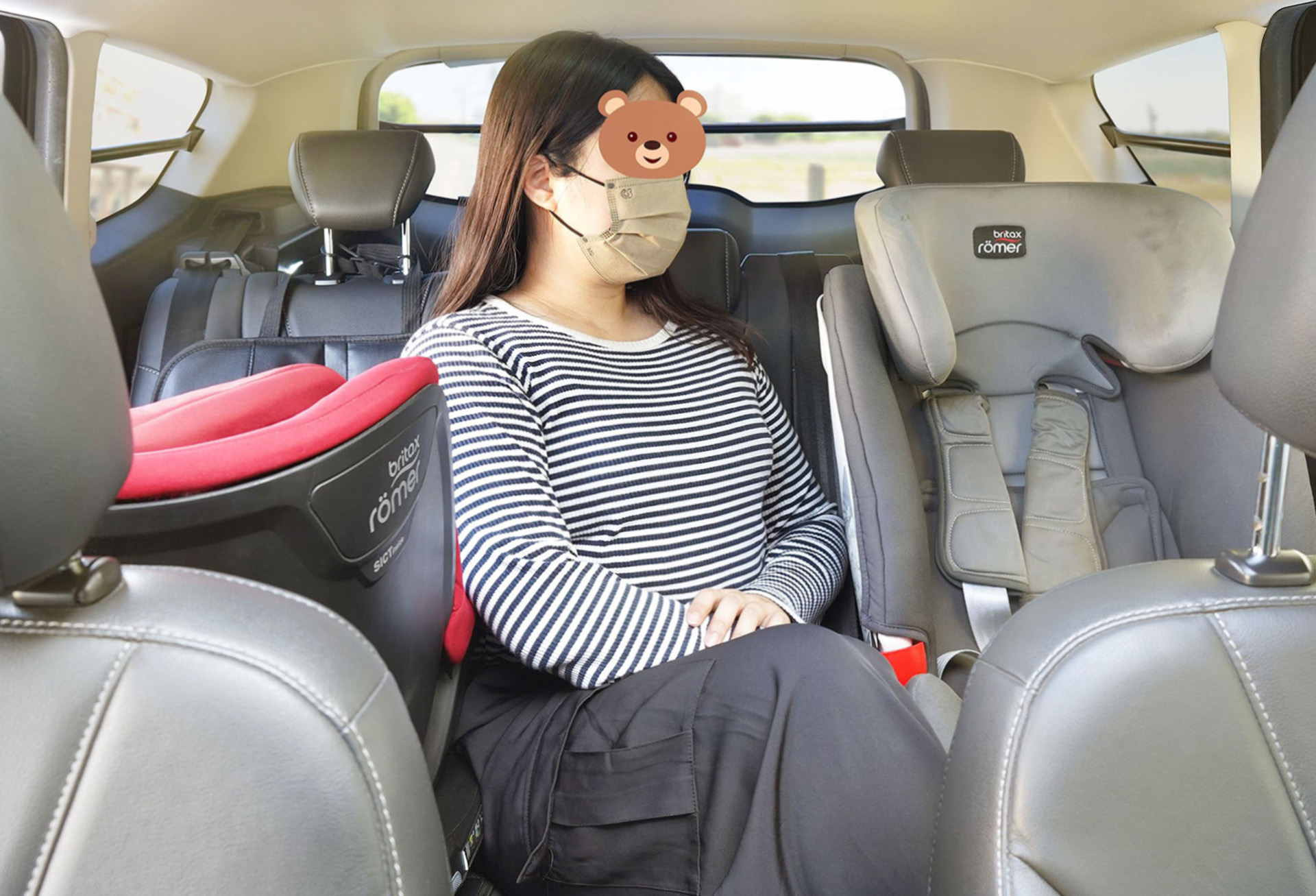 孩子出生後,許多媽媽會選擇坐在後座方便照護,但如果是二胎家庭,就算是身材纖細的媽媽,夾在兩台安全座椅中間的話也是非常不舒服的,更不用說產後尚未恢復的我,肩膀甚至不能完全貼在椅背上,根本就像夾心餅乾,如果是長途旅程,下車後腰酸背痛是基本。