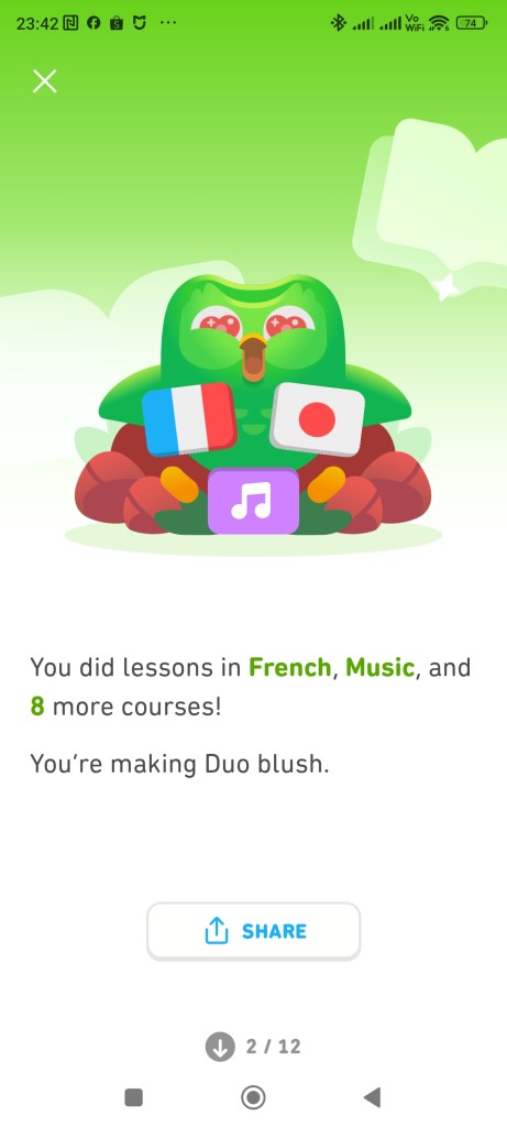 鑒於Duolingo真的是無痛學習,所以我們也趁課業不重時多擴一些其他語系,預計在第三年會有更多的分享。